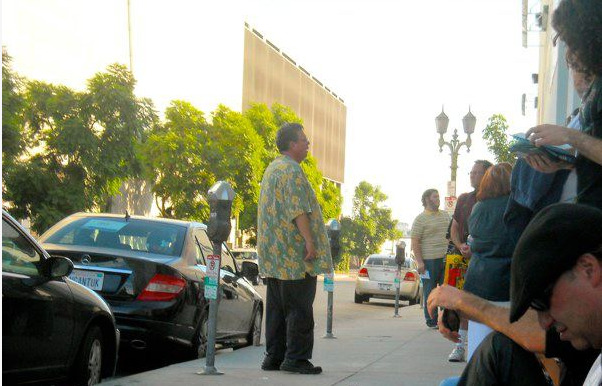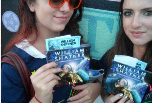 We got in line an hour and forty five minutes early to meet the Shat. You would think that the line would have a solid nerd/hipster mix. But no, it mostly obese dudes in their 30s wearing elastic-waisted pants. That being said, we were somehow the only ones with homemade shirts — and jeans that button.