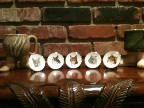 My friend helped me shop for apartment trinkets yesterday, and I paid her with these miniature decorative cat plates (also, in love).  I was hoping they were handmade portraits of some crazy lady’s decreased cats, but alas, they were made in China. The one second to the left has a double chin.